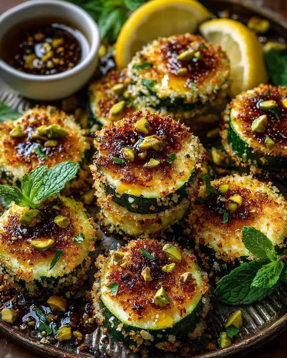 Pistachio-Crusted Zucchini Bites with Lemon Honey Drizzle