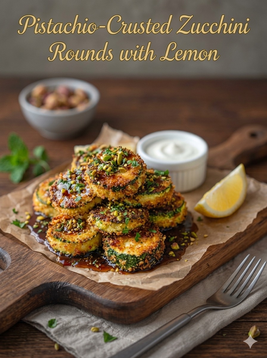 If you’re looking for a snack or side dish that feels both light and indulgent, these pistachio-crusted zucchini rounds are a perfect choice. Crisp on the outside, tender on the inside, and topped with a bright lemon honey drizzle, they deliver a beautiful balance of textures and flavors. The nutty crunch of pistachios paired with Parmesan creates a golden crust, while the citrusy finish adds freshness that keeps every bite exciting. This recipe works wonderfully as an appetizer, party snack, or even a healthy alternative to fried sides.