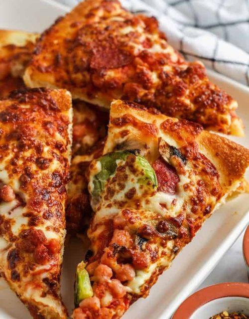 - Even with a thin crust, the texture doesn’t dry out and remains moist and slightly crispy.