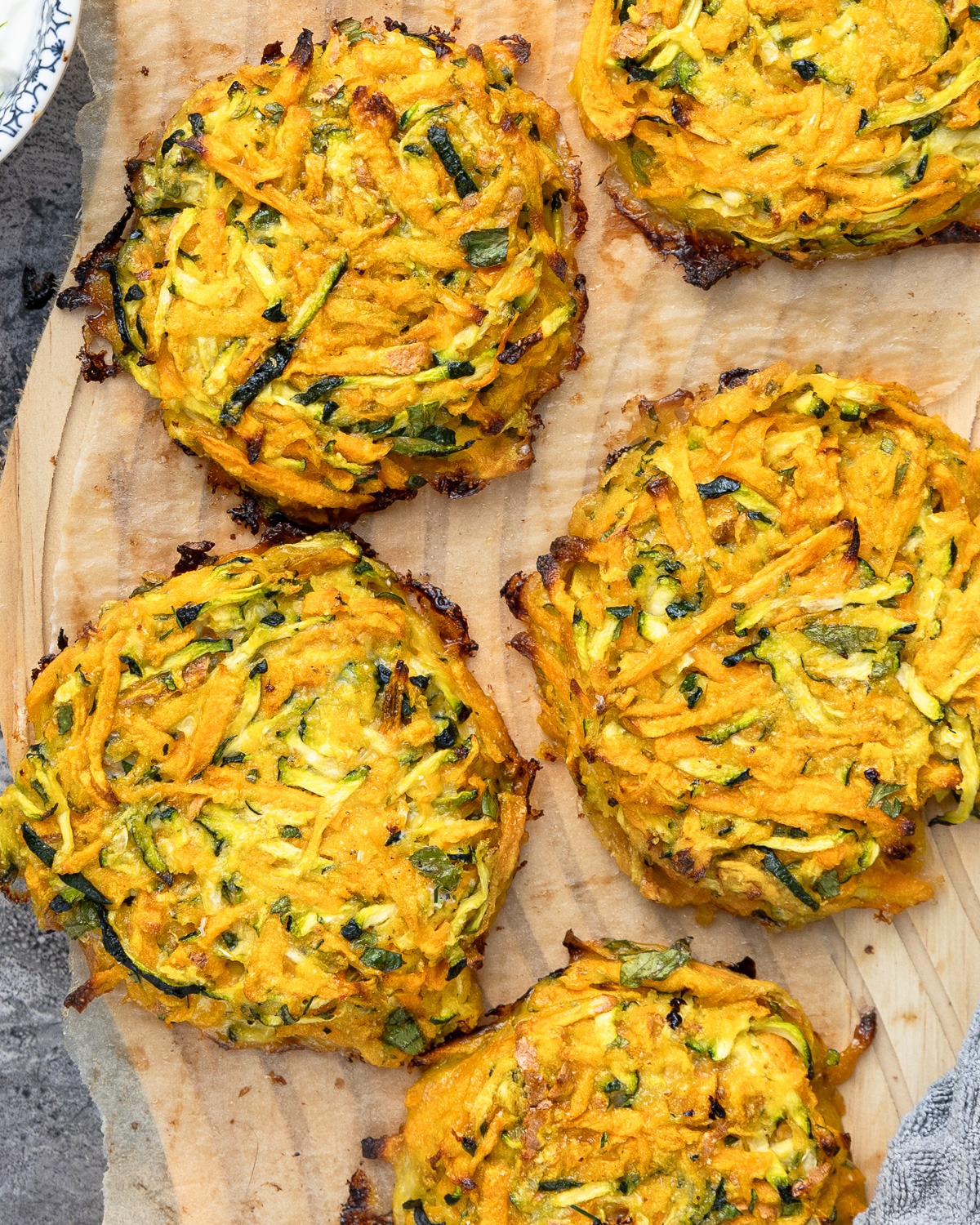 Drain well: Squeeze out as much liquid from the potatoes and zucchini as possible to avoid soggy fritters.