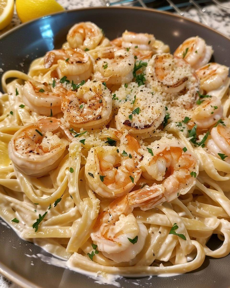 Creamy, aromatic, and easy to prepare, this shrimp Alfredo pasta is ideal for a filling dinner that feels decadent but uncomplicated!