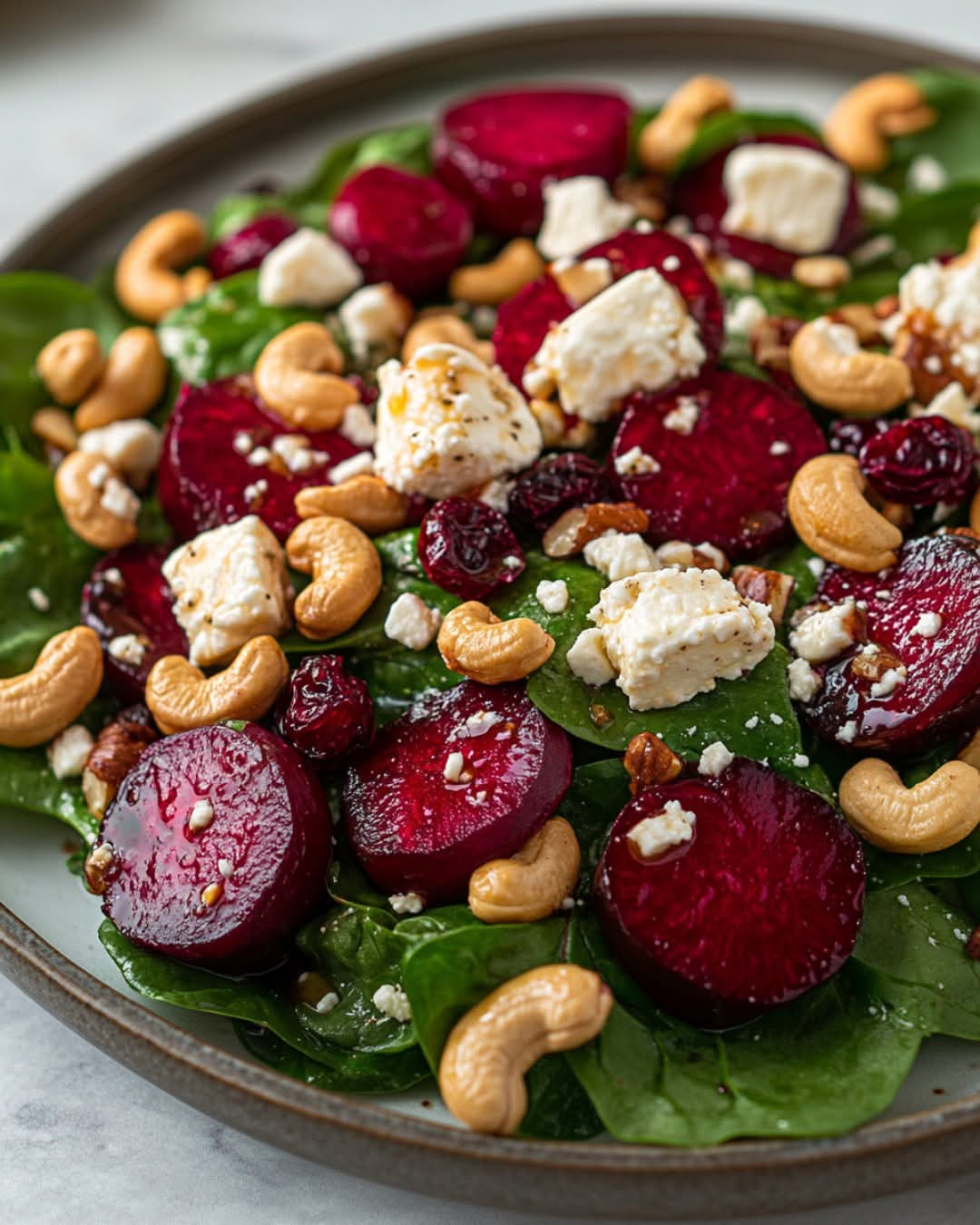 Indulge in the sweet, earthy flavors of roasted beets paired with the creamy richness of cashews and the nutritious goodness of spinach in this delightful Roasted Beet and Cashew Spinach Salad! This innovative recipe combines the natural sweetness of beets with the savory flavor of cashews and the freshness of spinach, creating a truly unforgettable culinary experience.
