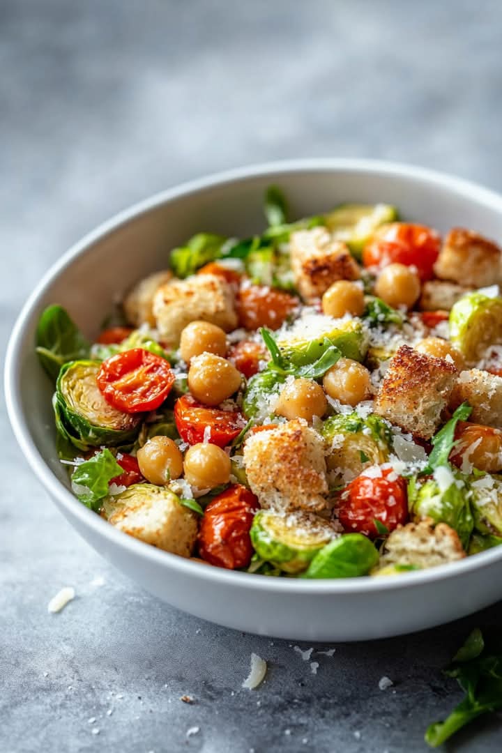 Roasted Brussels Sprout Salad with Chickpeas and Cherry Tomatoes