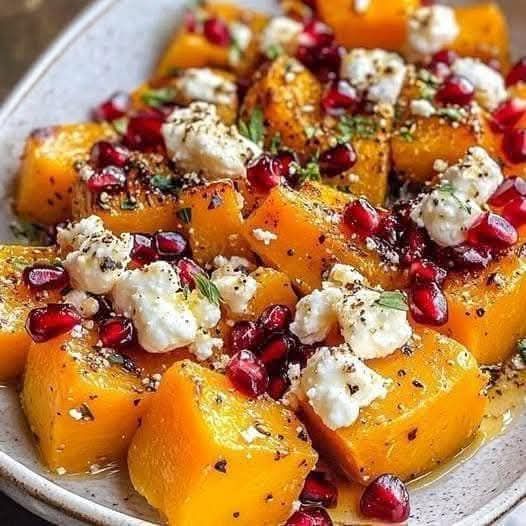 This Mediterranean-inspired roasted butternut squash dish combines the natural sweetness of caramelized squash with the tangy creaminess of goat cheese, the burst of freshness from pomegranate seeds, and the earthy aroma of rosemary. Drizzled with extra virgin olive oil and optionally finished with balsamic glaze, this dish is perfect as a side or light meal—great for fall, winter, or festive gatherings.