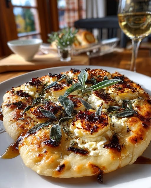 Roasted Garlic & Camembert Flatbread with Fig Jam & Fried Sage