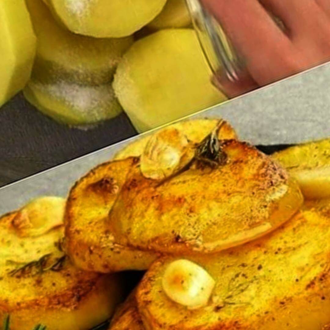 – If using, scatter the fresh rosemary sprigs and crushed garlic cloves over the potato slices for added flavor.