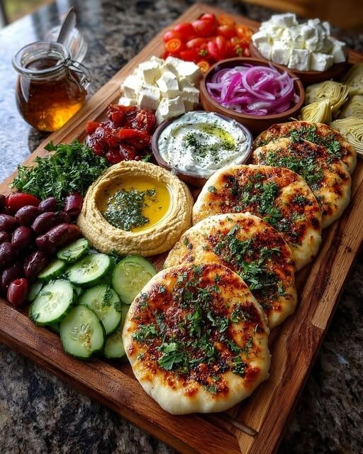 A Rustic Mediterranean Flatbread and Mezze Board is one of those spreads that feels effortless yet impressive. It brings together warm, herby flatbreads with a colorful assortment of dips, fresh vegetables, and bold Mediterranean flavors. Perfect for gatherings, casual dinners, or even a relaxed weekend lunch, this board is all about variety and balance. Creamy hummus, tangy tzatziki, smoky baba ganoush, and briny olives pair beautifully with crisp vegetables and soft, warm bread. The best part is how customizable and shareable it is.