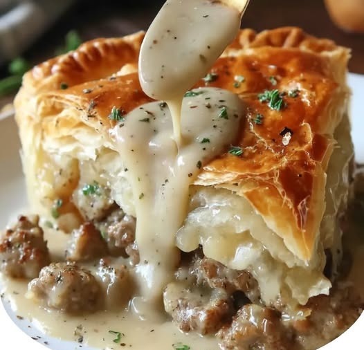 This Sausage Gravy Puff Pie is the ultimate comfort food—crispy, golden puff pastry on the outside, and creamy, peppery sausage gravy inside. Imagine the flavors of a hearty Southern breakfast wrapped in a flaky pastry crust. Perfect for brunch, weeknight dinners, or when you just want something cozy and satisfying. The buttery layers of puff pastry complement the savory sausage gravy so well that every bite feels like a hug from the inside.
