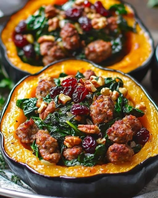 Fill each squash half with the sausage mixture, pressing it down so it’s evenly packed.