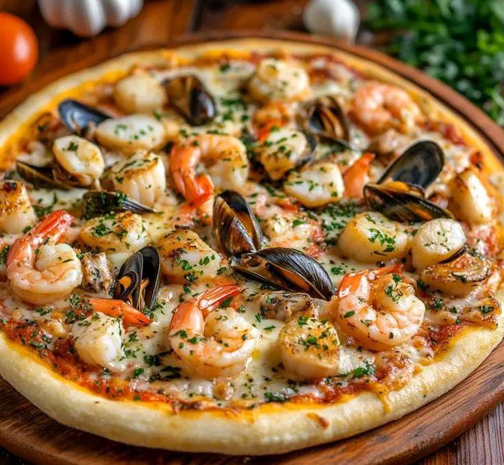Seafood pizza is a delightful fusion of fresh ocean flavors and the classic cheesy goodness of pizza. This recipe combines shrimp scallops and mussels over a rich tomato sauce and melted cheese creating a mouthwatering dish that’s perfect for seafood lovers. Whether you’re making it for a family dinner or a special occasion this pizza is sure to impress!