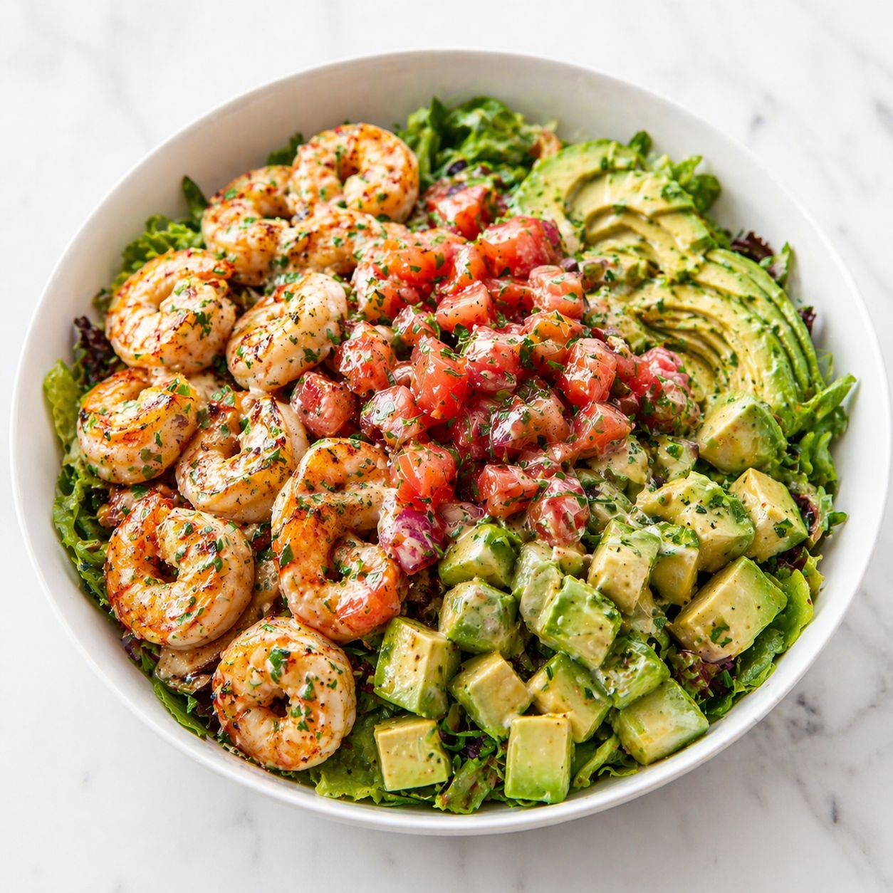 A fresh, vibrant, and protein-rich salad with juicy grilled shrimp, creamy avocado, and zesty tomato salsa. Light yet filling—perfect for a healthy meal.