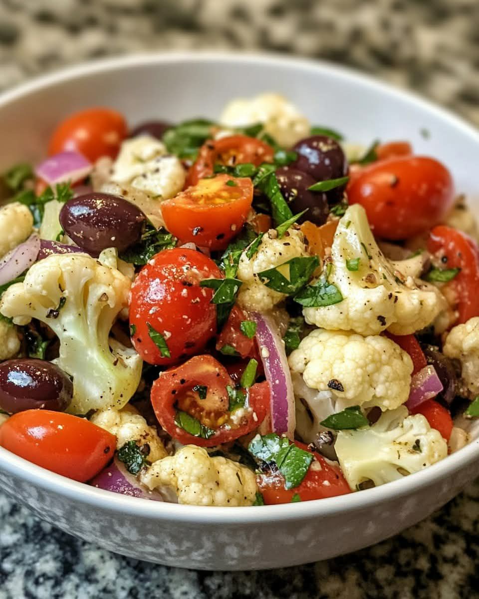 This Mediterranean-inspired salad from Sicily is a perfect blend of sweet, salty, and tangy flavors. It features tender cauliflower, briny capers and olives, crunchy pine nuts, and sweet raisins, all tossed in a zesty lemon and olive oil dressing. This dish is light, refreshing, and perfect as a side salad or a meal on its own.