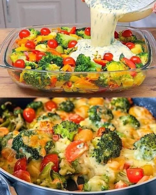 4. Transfer to Baking Dish: Pour the vegetable mixture into a baking dish, spreading it out evenly.