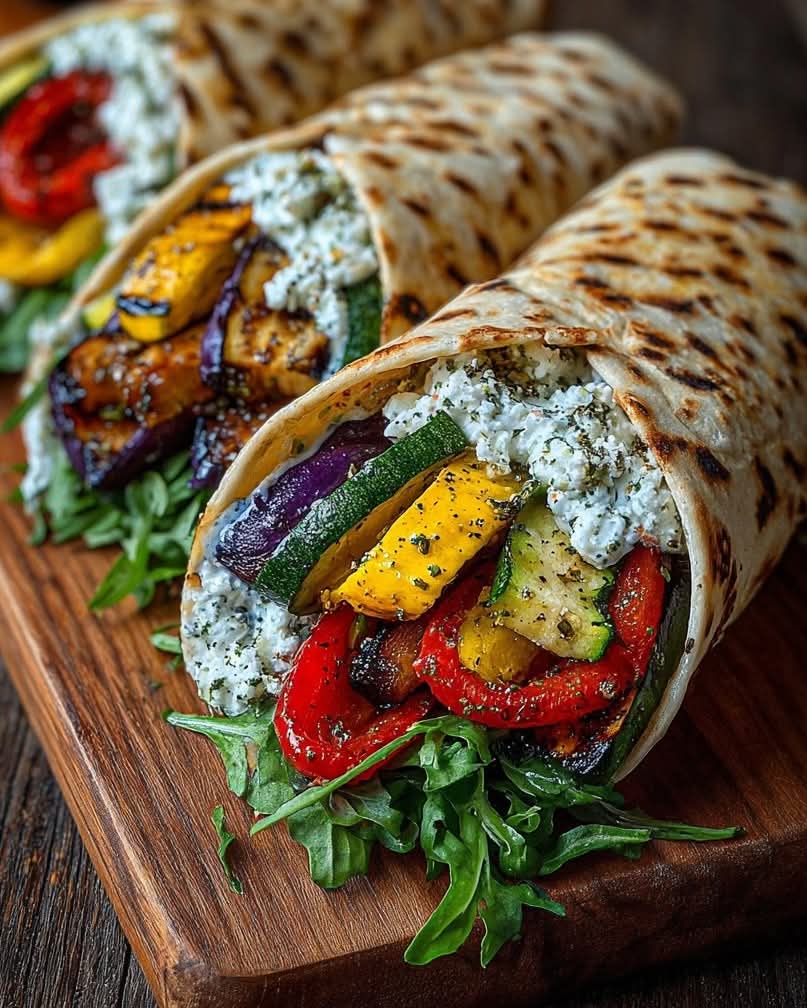 If you love bold Mediterranean flavors and light, satisfying meals, these Smoked Vegetable Lavash Rolls are a must-try. Tender slices of eggplant and zucchini are roasted until lightly smoky and caramelized, then layered with sweet roasted peppers, peppery greens, and a creamy feta spread infused with za’atar. Wrapped in soft lavash, each bite is fresh, savory, and beautifully balanced.