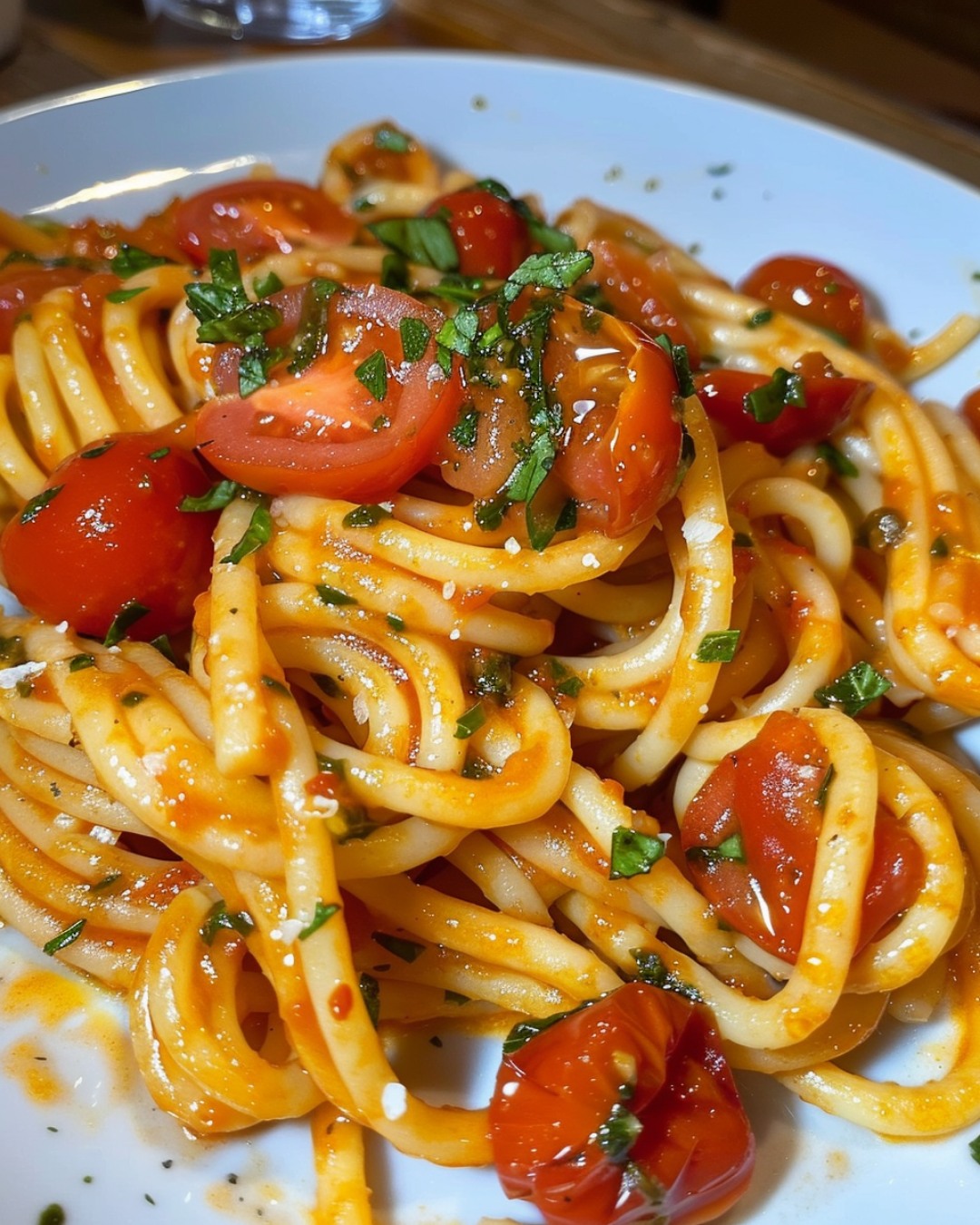 This Spaghetti with Cherry Tomato Sauce is a simple yet flavorful dish that captures the essence of fresh ingredients. Juicy, sweet cherry tomatoes burst into a light, aromatic sauce, enhanced with garlic, olive oil, and a touch of red pepper flakes for warmth. Tossed with perfectly cooked spaghetti and finished with fresh basil and Parmesan, this recipe is a go-to for busy weeknights or an easy yet elegant meal.