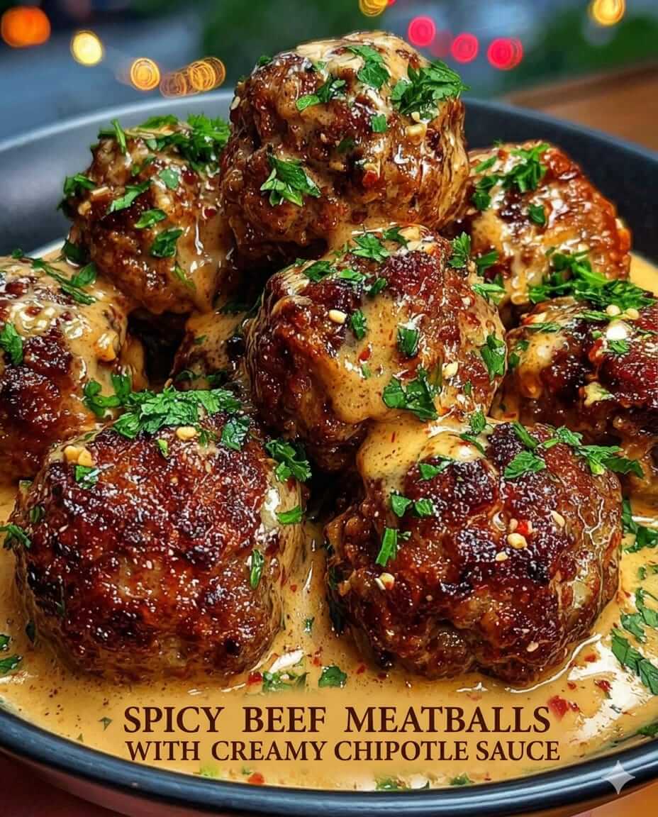 If you love bold flavors with a creamy, smoky kick, these Spicy Beef Meatballs with Creamy Chipotle Sauce are about to become your new favorite comfort food. Juicy, well-seasoned beef meatballs are infused with smoked paprika, chili powder, and cayenne for gentle heat, then simmered in a luscious chipotle cream sauce that’s rich, tangy, and slightly smoky.