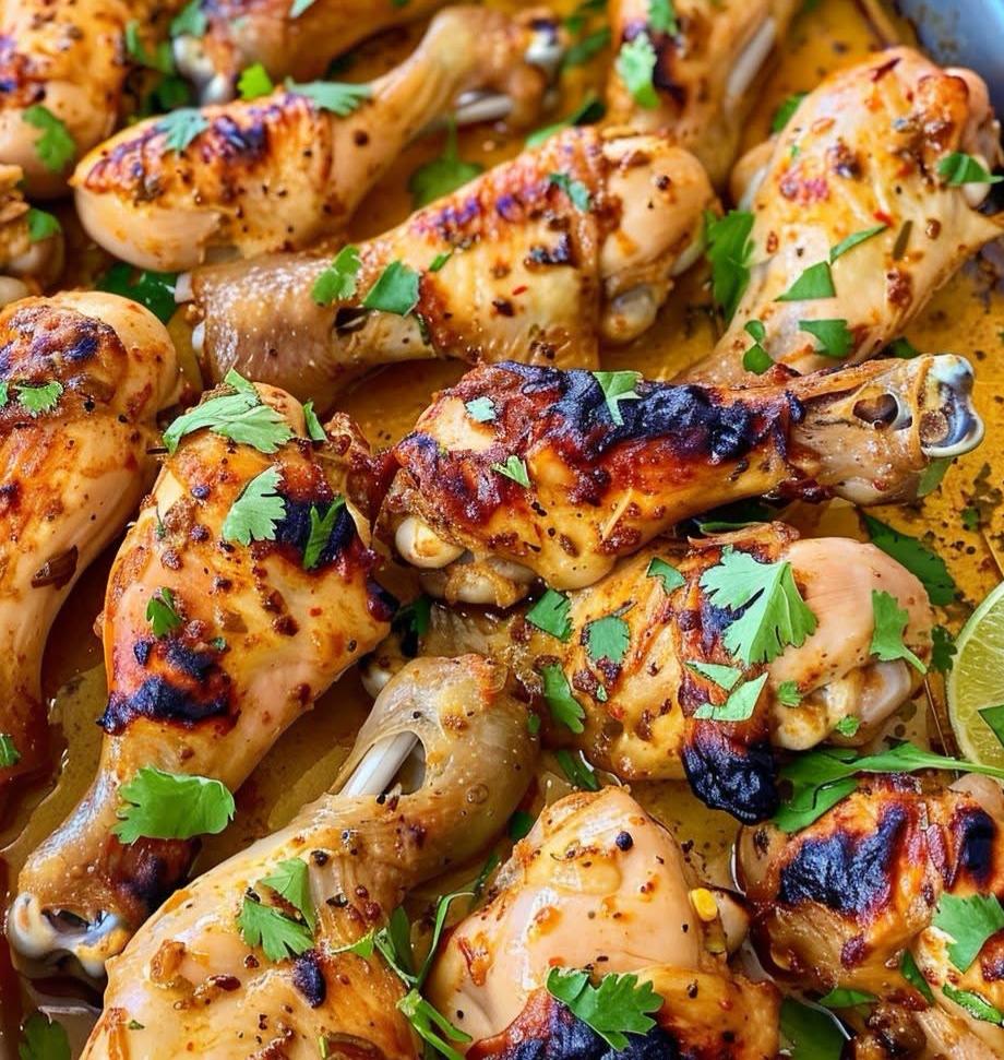 These juicy and flavorful chicken drumsticks are marinated in a zesty mix of garlic lime juice and spices then baked to perfection with a delicious charred crust. They’re perfect for weeknight dinners BBQs or meal prepping.