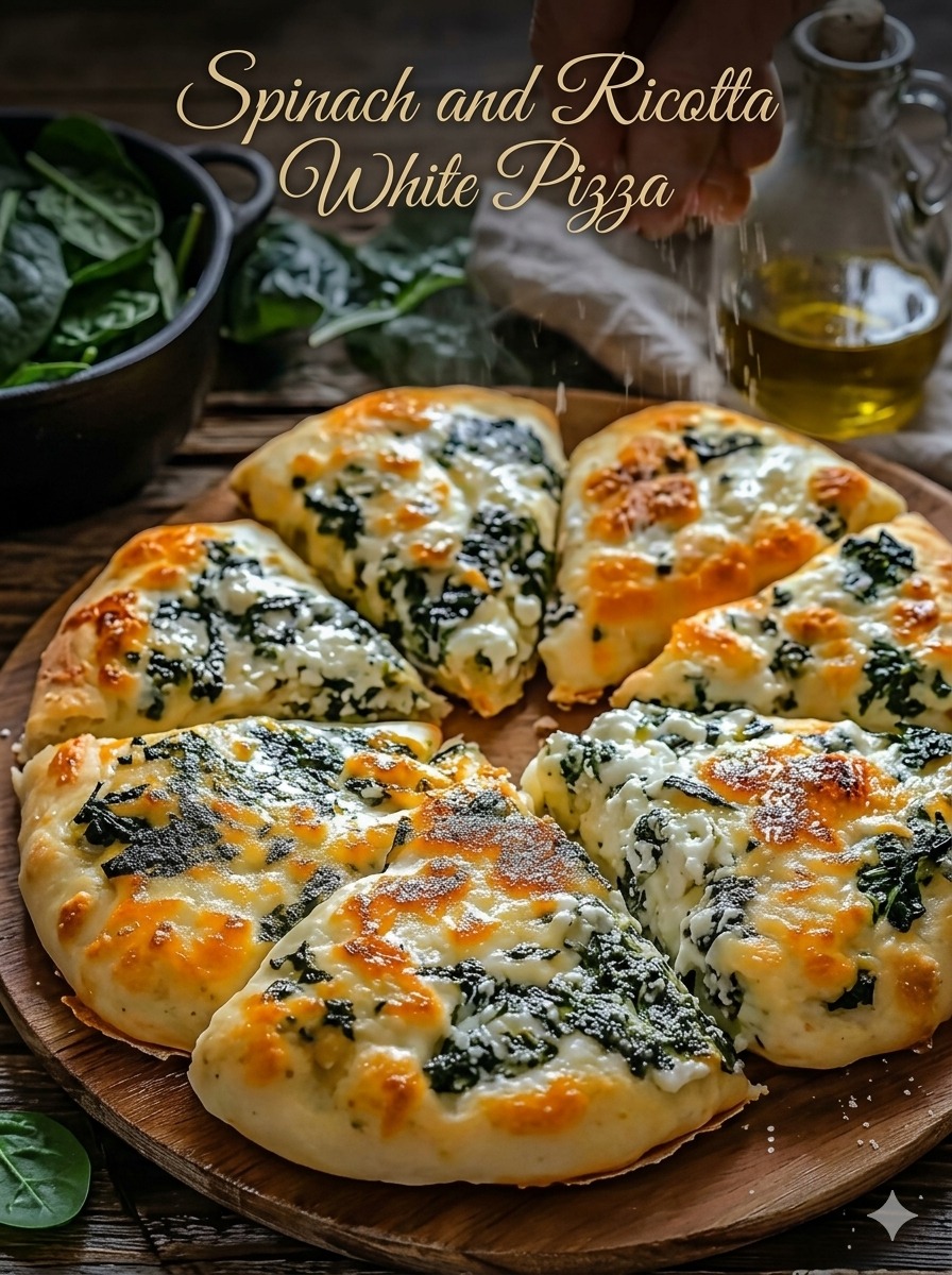 Spinach and ricotta white pizza is a fresh, creamy alternative to traditional tomato-based pizzas. With a rich layer of ricotta, gooey melted mozzarella, and tender spinach infused with garlic, every bite is both comforting and flavorful. This pizza leans into simple, high-quality ingredients, allowing each component to shine. The absence of tomato sauce gives it a lighter, more delicate profile, while herbs and a hint of lemon add brightness. It’s perfect for a cozy dinner, weekend treat, or even entertaining guests.