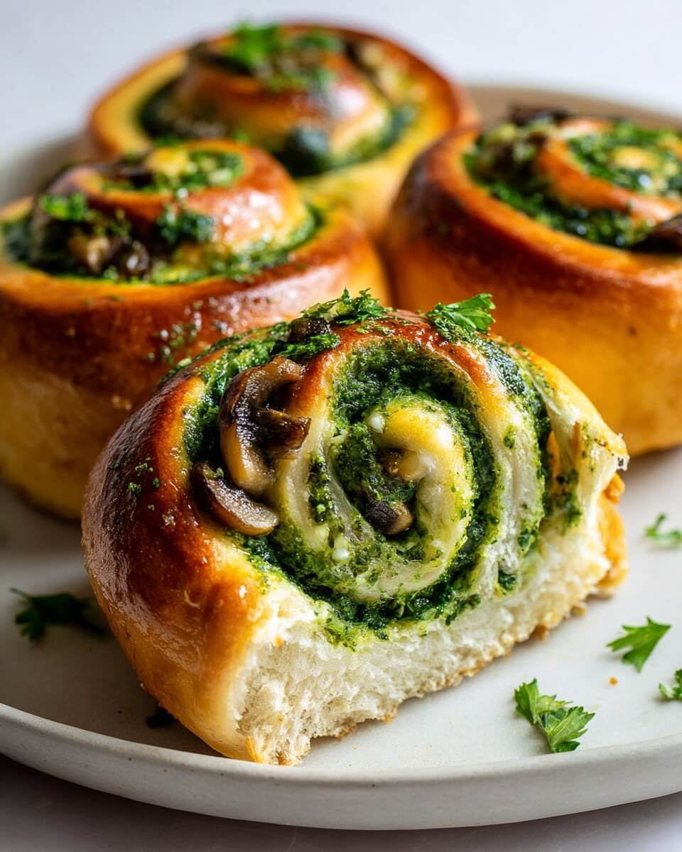 Spinach & Mushroom Cream Cheese Swirl Rolls (The Green Spiral Reveal)