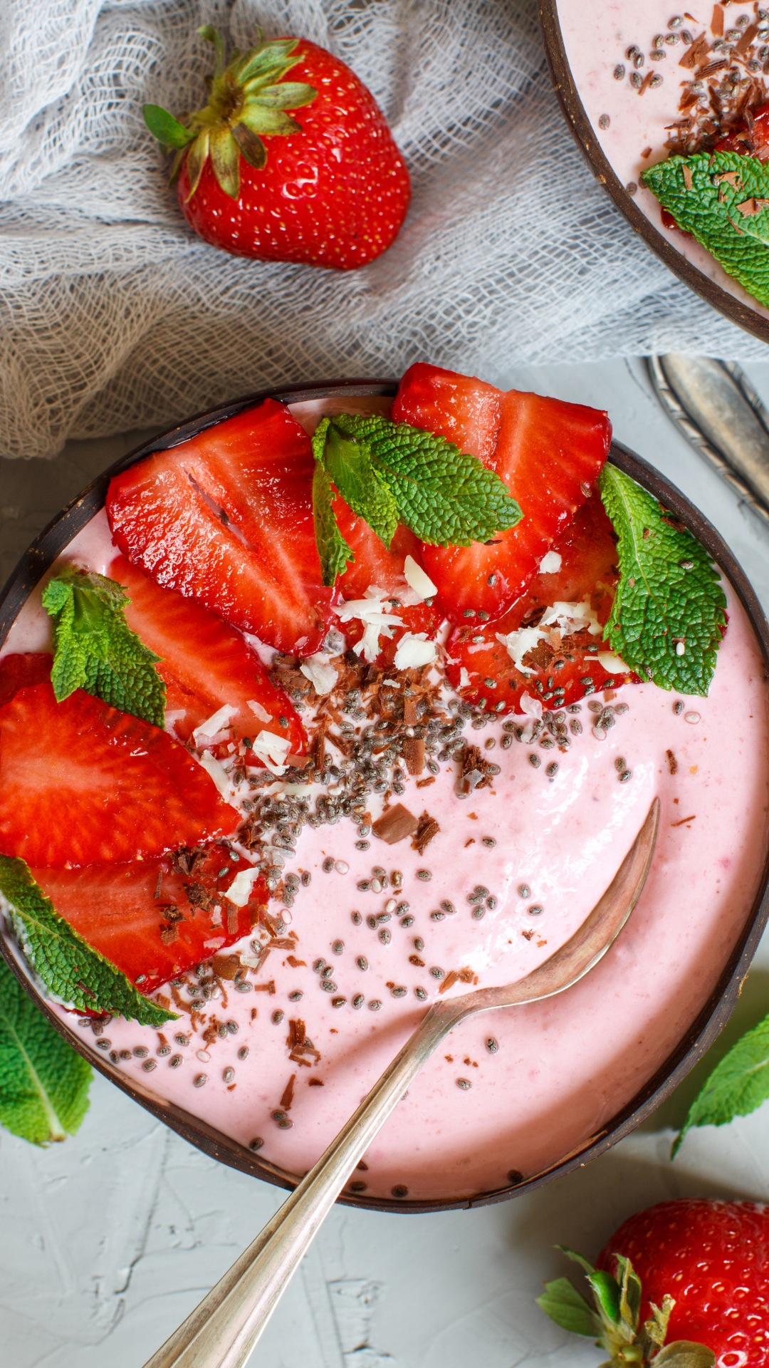 Indulge in the fruity delight of this refreshing smoothie! Ripe banana and sweet frozen strawberries blend harmoniously, while a splash of tangy pomegranate juice adds a burst of flavor. It’s a refreshing and nourishing treat that will leave you feeling rejuvenated.