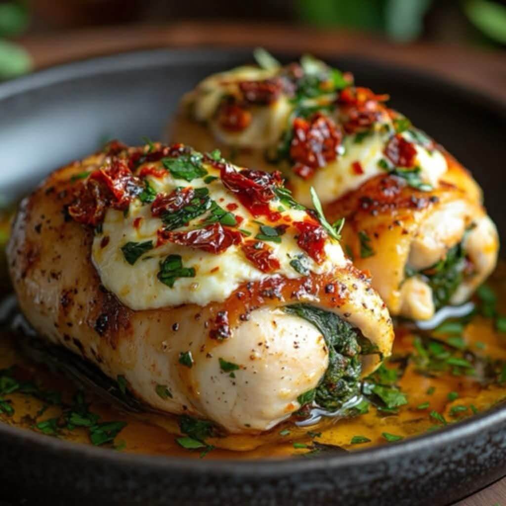 Stuffed Chicken Breast with Spinach Cheese & Sun-Dried Tomatoes