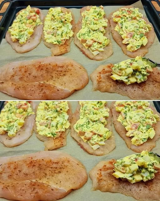 A tasty and distinctive take on traditional filled chicken is this filled Chicken Breast with Egg Salad Filling. The rich and savory filling made from the creamy egg salad, fresh herbs, and a little spice goes well with the juicy, succulent chicken. Either for a big event or a midweek supper, this recipe is simple to cook and provides a filling meal. For a well-balanced platter, serve it with a crisp salad or roasted veggies on the side.
