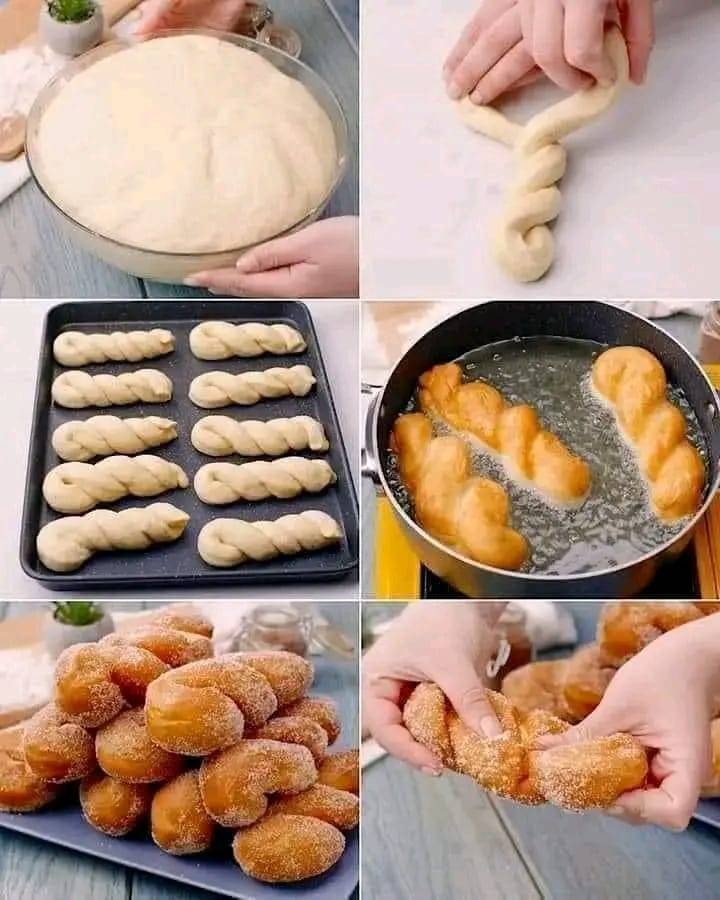 Avoid packing the pot too full as you carefully drop the twisted doughnuts into the boiling oil. Fry until golden brown and crispy, 1 to 2 minutes per side. To drain any extra oil, lay the doughnuts on a dish lined with paper towels after removing them from the oil using tongs or a slotted spoon.