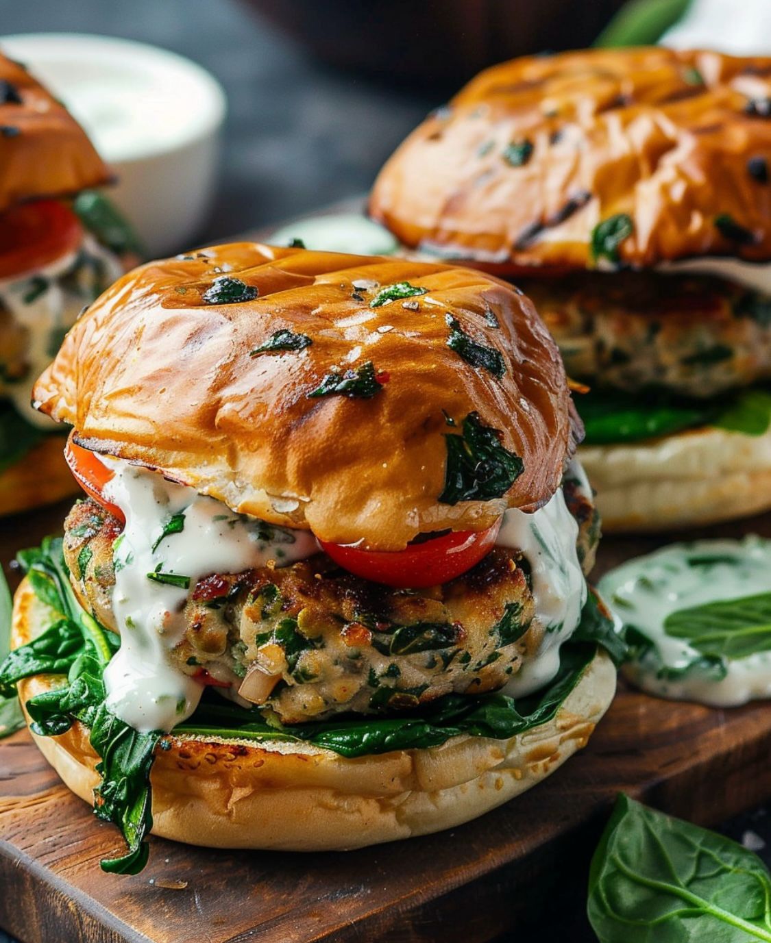Sun-Dried Tomato and Feta Spinach Burger with Tzatziki Sauce