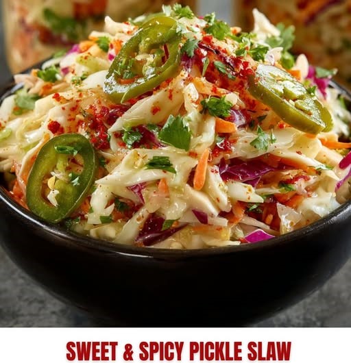 Sweet and Spicy Pickle Slaw is not your average coleslaw. The combination of creamy mayonnaise, bright pickle juice, gentle sweetness, and a touch of heat creates a bold and balanced side dish that stands out on any table.