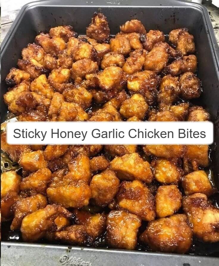 These chicken bites are crispy, tender, and coated in a rich sweet-and-savory sauce. The method uses light pan-frying followed by baking in sauce, which creates the caramelized coating seen in the photo.