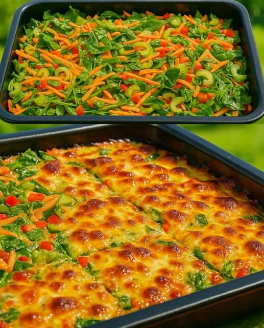 6. Bake in the preheated oven for 30-35 minutes, or until the top is golden brown and the vegetables are cooked through.