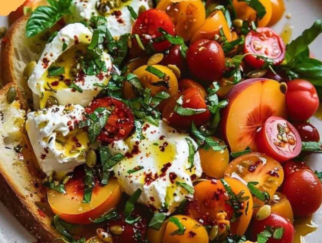 The Tomato Peach and Burrata Salad is a simple yet sophisticated dish that combines the sweetness of fresh peaches with the savory richness of burrata, making it a perfect addition to any summer meal or gathering. With its balance of flavors and textures, it’s a refreshing, no-cook option that’s sure to impress your guests or be a delightful treat for yourself. Whether you enjoy it as a side salad or a light main course, this dish brings the vibrant tastes of summer straight to your table!
