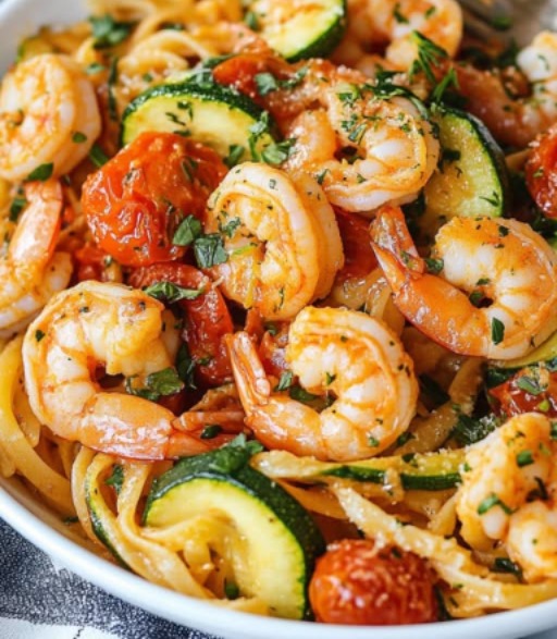 Tomato Zucchini Shrimp Pasta