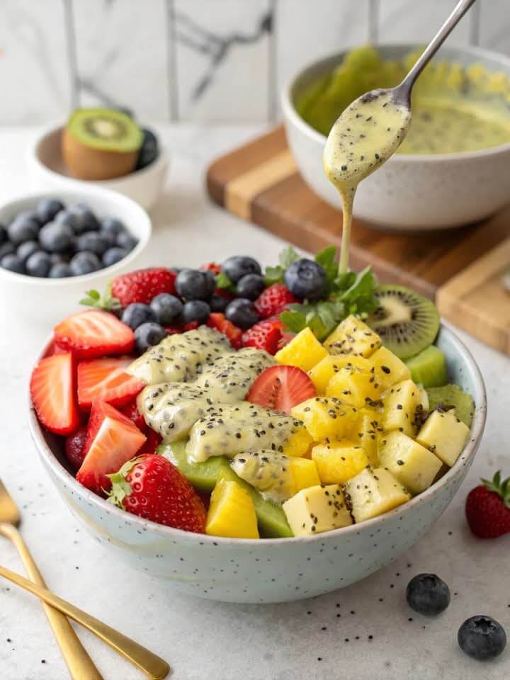 This Tropical Fruit Salad with Chia Honey Dressing is a refreshing vibrant dish bursting with the flavors of juicy tropical fruits and a naturally sweet chia-infused dressing. It’s perfect for breakfast brunch picnics or a light dessert. Packed with vitamins fiber and antioxidants it’s a healthy and colorful way to enjoy fresh fruit with a unique twist.
