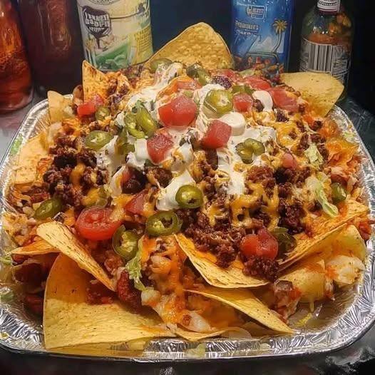 Preheat your oven to 375°F (190°C). Arrange a layer of tortilla chips on a large baking sheet.