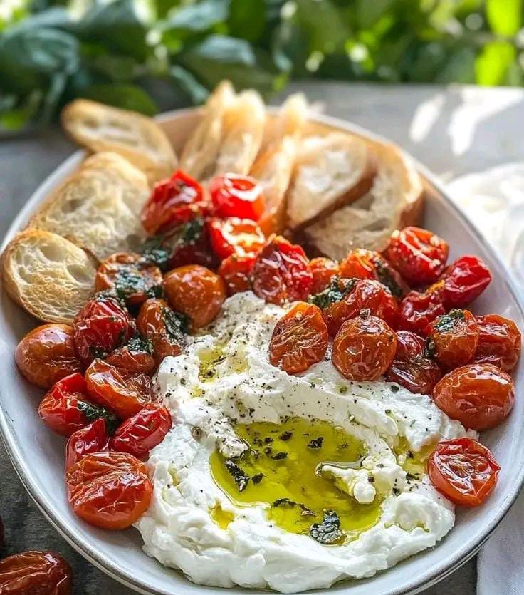 Whipped Ricotta with Roasted Cherry Tomatoes is a simple yet sophisticated dish that’s perfect for any occasion. It’s creamy tangy and slightly sweet making it a crowd pleaser whether you’re serving it as an appetizer snack or side dish. Plus it’s quick to prepare and can be customized with different toppings and herbs. Try it at your next gathering and it’s sure to become a favorite