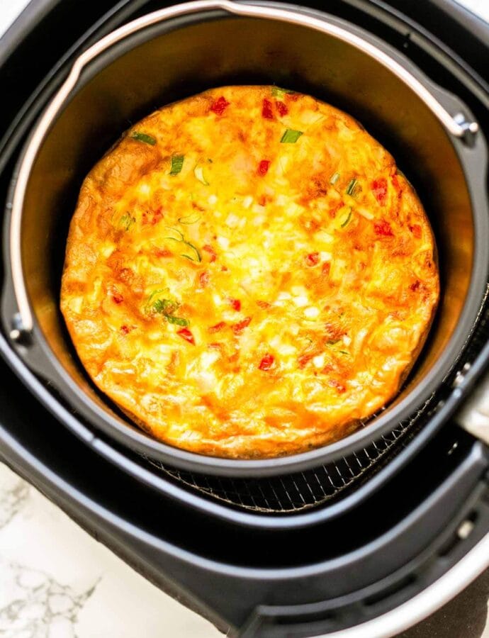 - Remove from Air Fryer: Take the food out of the air fryer with caution. After loosening the omelet’s edges with a spatula, carefully move it onto a dish.