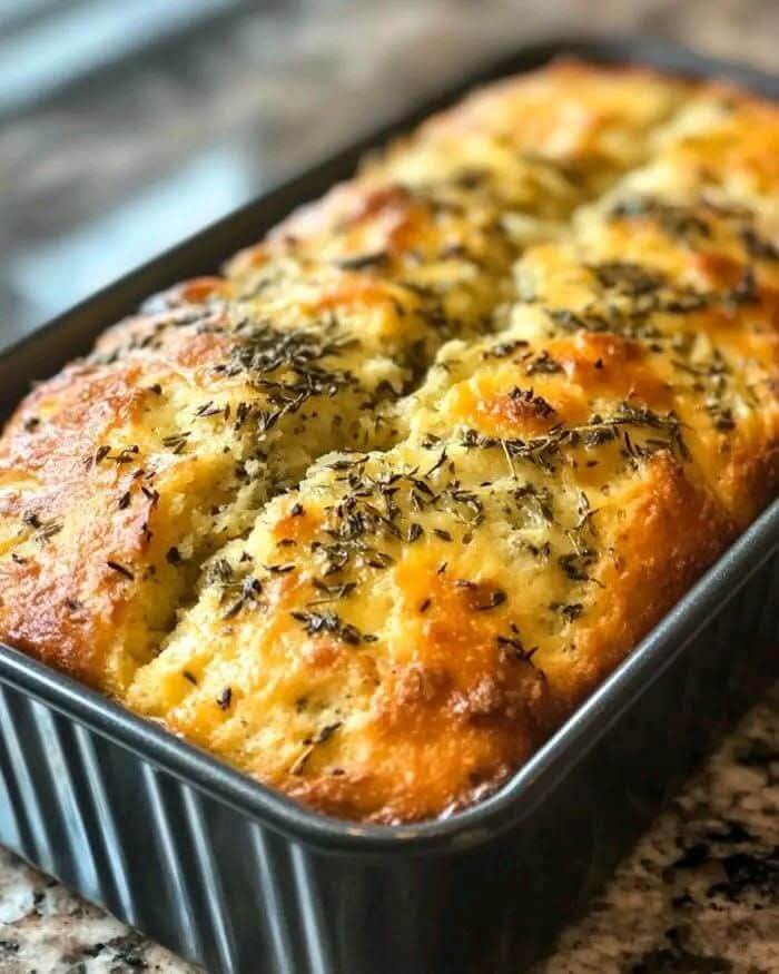 Pour batter into the prepared loaf pan. Sprinkle extra herbs on top for a rustic look. Bake for 45–55 minutes, or until a toothpick comes out clean from the center.
