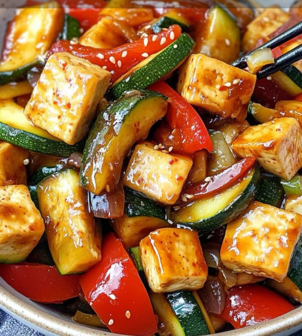 This Zucchini Stir-Fry with Tofu is a quick easy and flavorful plant-based dish that comes together in under 30 minutes. Loaded with fresh zucchini bell peppers and golden tofu cubes all tossed in a savory-sweet garlic sauce this stir-fry is perfect for a healthy dinner or meal prep. It’s naturally vegan gluten-free and customizable to your spice level.